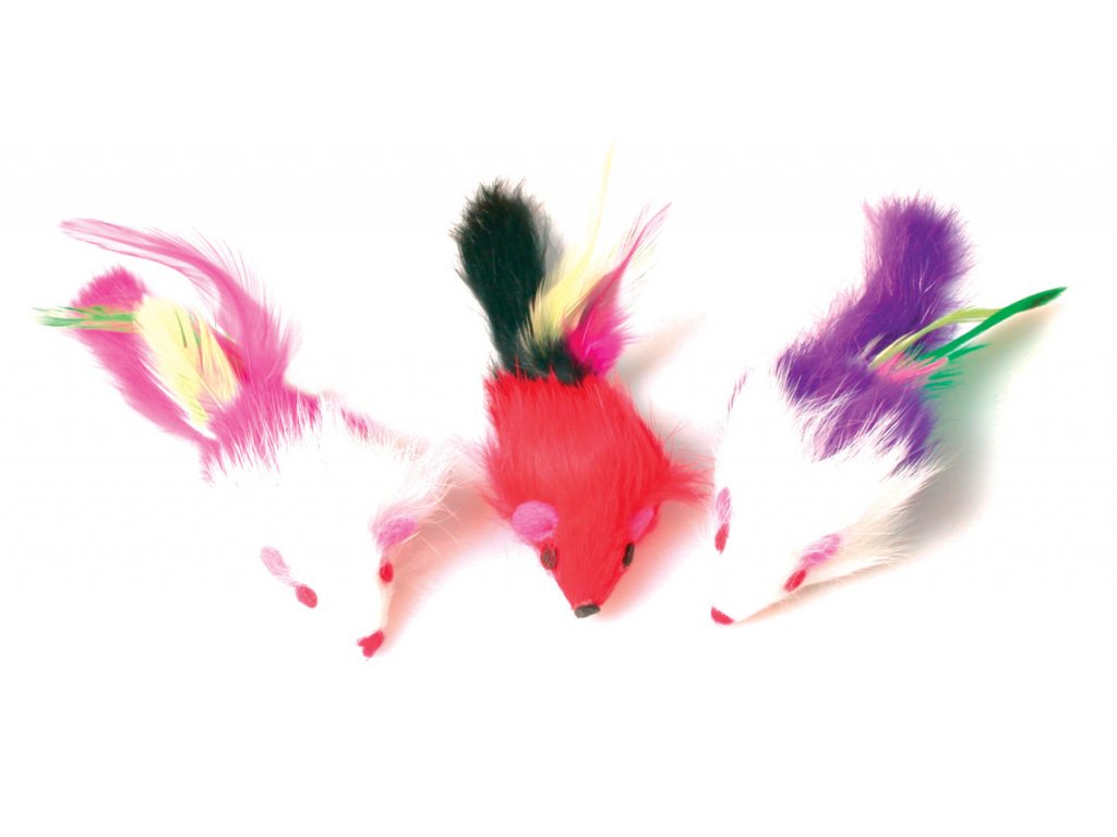 Myšky s barevnými peříčky potěší každého malého lovce.