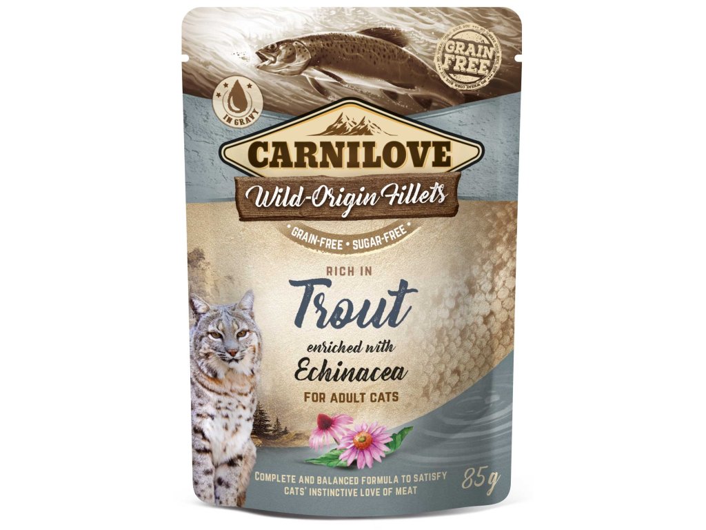 Carnilove kuře a pstruh se třapatkou - kapsička pro kočky 85 g min.trvanlivost 13-02-2026
