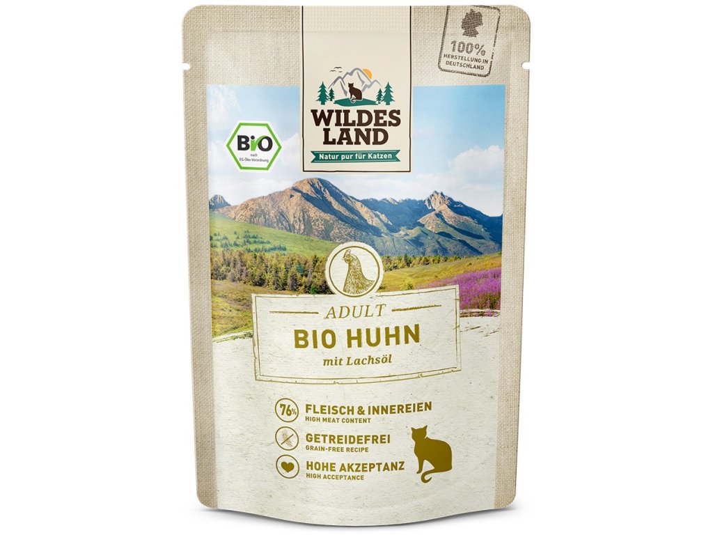 Wildes Land Bio kuře s lososovým olejem - kapsička pro kočky 85 g