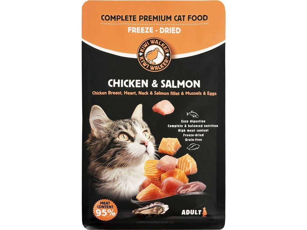 Kiwi Walker Chicken Salmon - mrazem sušené krmivo pro kočky 150 g
