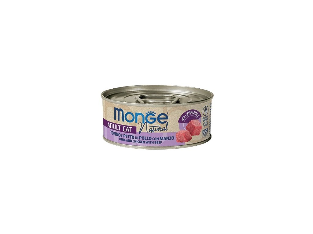 Monge Natural tuňák, kuře a hovězí - konzerva pro kočky 80 g