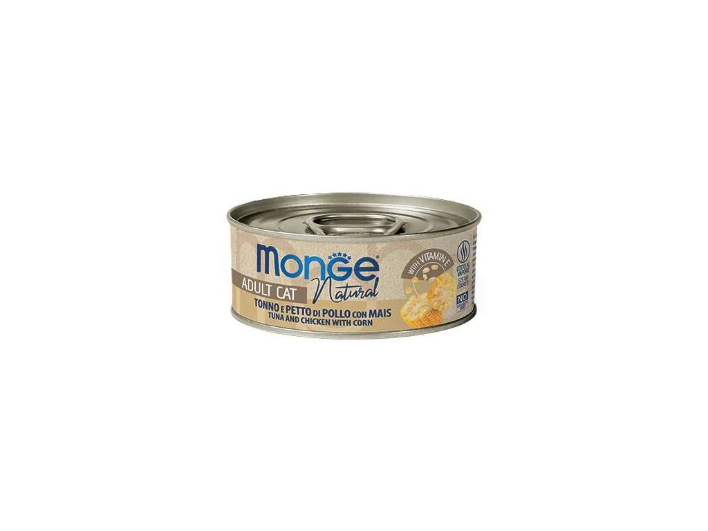 Monge Natural tuňák, kuře a kukuřice - konzerva pro kočky 80 g