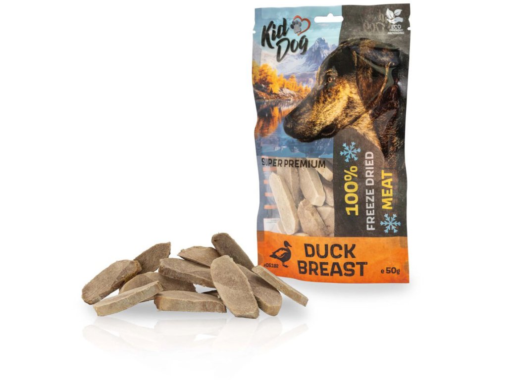 Celá kachní prsa sušená mrazem nakrájená na plátky, bez aditiv, 100% přírodní pamlsek pro psy, skvělý i pro BARF, lze nalámat na menší kousky
