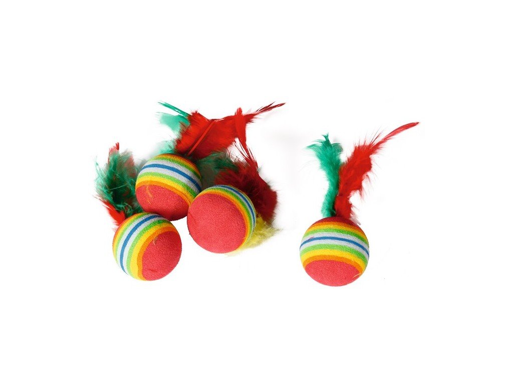 Sada 4 malých míčků s peříčky - hračka pro kočky