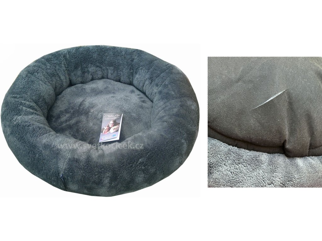 Měkký pelíšek pro kočky a malé pejsky, celý pratelný, lehká vada - 6,5 cm dlouhý průřez zespodu pelíšku