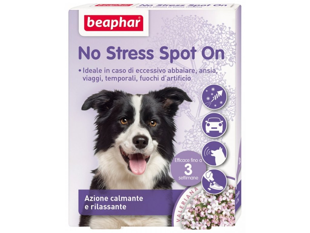 Přípravek ke snížení stresu a zklidnění psů. Beaphar No Stress Spot On je vhodný pro všechna plemena a věkové kategorie psů. Snižuje stres u psů a udržuje je v klidu díky zklidňujícímu účinku extraktu kozlíku lékařského, který je obsažen v mikrokapslích. Ty fungují na principu pomalého uvolňování a dlouhodobého účinku.