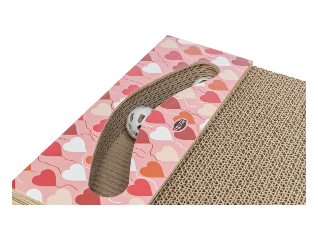 Toto škrabadlo má navíc funkci hračky. Část škrabadla má vyhrazené místo pro cinkající míčky.
