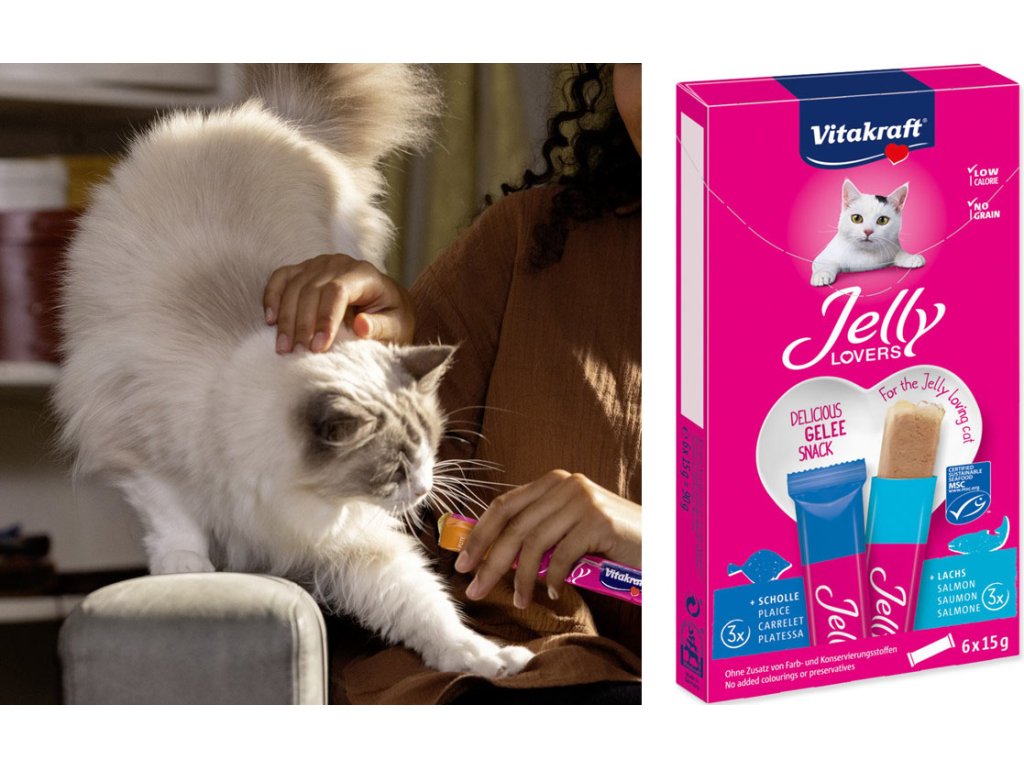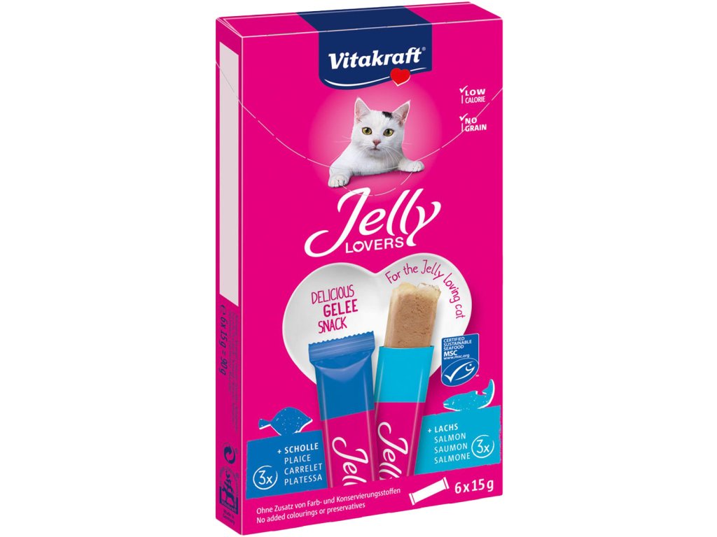 Vitakraft Lovers želé tyčinka s lososem a platýsem 6x15 g + krém s tuňákem a krevetami ZDARMA